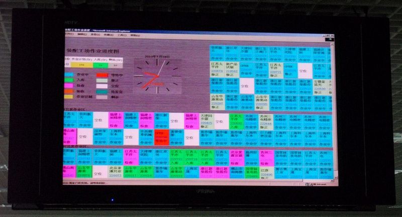 再探倉庫,一隊準備發出的物流車上,整齊一致;但并非按物件外型擺放。好奇的跑到物流倉庫辦公區,送料員告訴我:“按組裝進度送件,以組裝位置和裝配工拿取方便擺放。”為別人都考慮得如此細致,令我由衷佩服。再探裝配,嘿嘿,這個時候,人流已經過了,車間安安靜靜,正巧碰上一位員工用牙刷往軸承里刷黃油,問其為何要用牙刷,他給的理由是“均勻,全部刷到位,開車后沒有多余的被擠出來。”呃,原來是這樣,多么細致的工作態度啊~這就是為什么車間里這么多調試中的設備,卻臺臺干干凈凈,到處不見多余的油污的原因嗎?