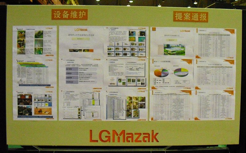 疑團不去,難以釋懷。是不是臨陣磨槍?必竟這是小巨人的十年回顧,制造未來的MPF展示會。我們面對國外客戶時,不也會突擊整頓一下嗎?于是,不理會到處仔細觀看的老板,我像個淘氣的小孩,開始了我在車間的探險。不跟著人流,不看開放車間,我鉆進了裝配與板金車間之間的一個封閉小車間,我不懂這里是哪,只看到標識上機加存油處幾個大字。在我眼前,油桶機架錚亮,掏出衛生紙在機架地面細擦,居然紙上沒有一點油跡。但是,我胡亂拍攝的照片,告訴了我達到這種效果的原因:一是責任分明,不管在車間的哪個區域,你都可以明顯的看到有醒目標識著“XXX衛生責任區”;二是措施到位,他們的員工告訴我,有絲毫不漏的放油閥門,還采用接油壺和接油盤雙重保險,油不滴到地面就理所當然了。